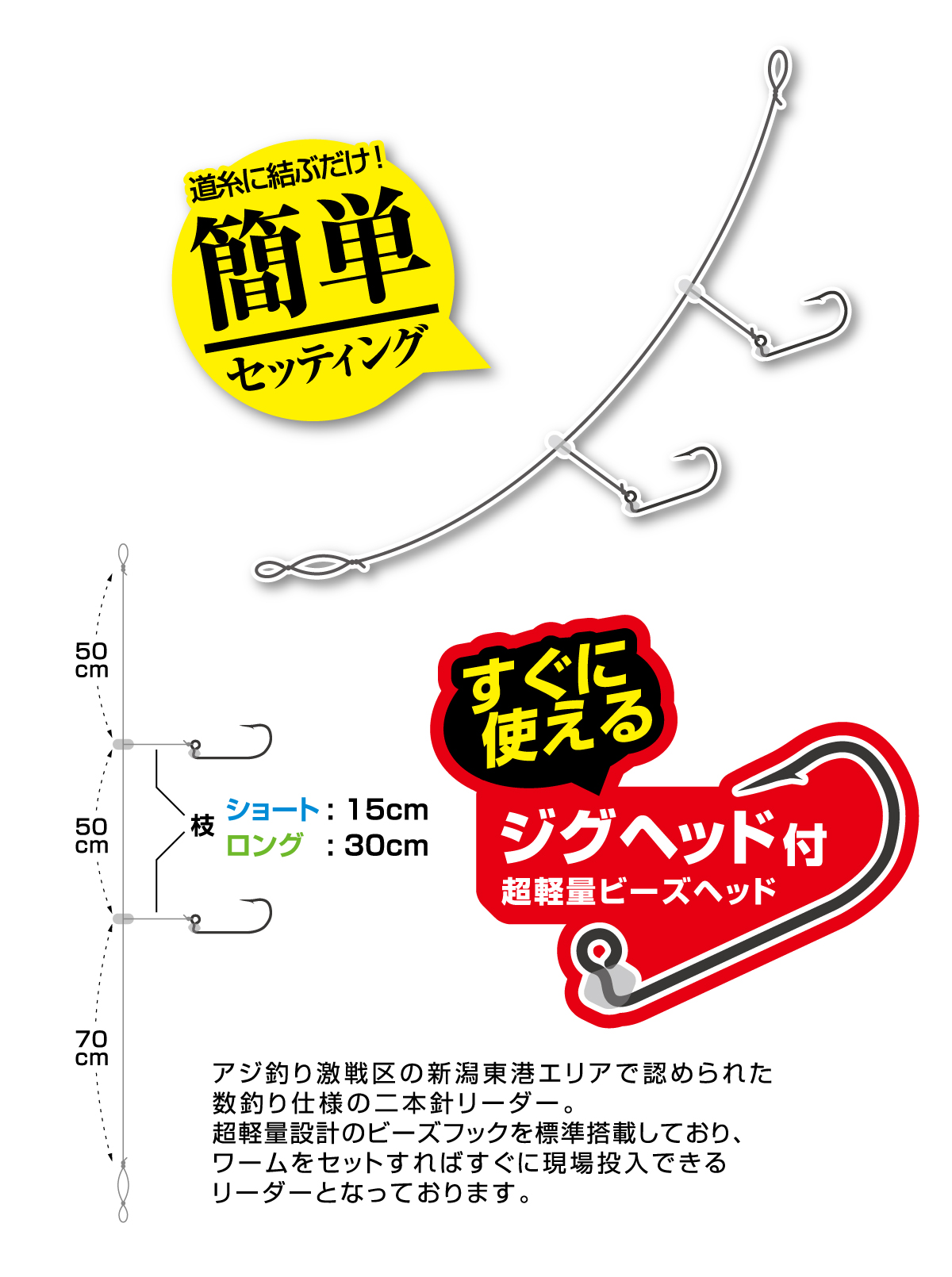 すぐに使えるジグヘッド付超軽量ビーズヘッド